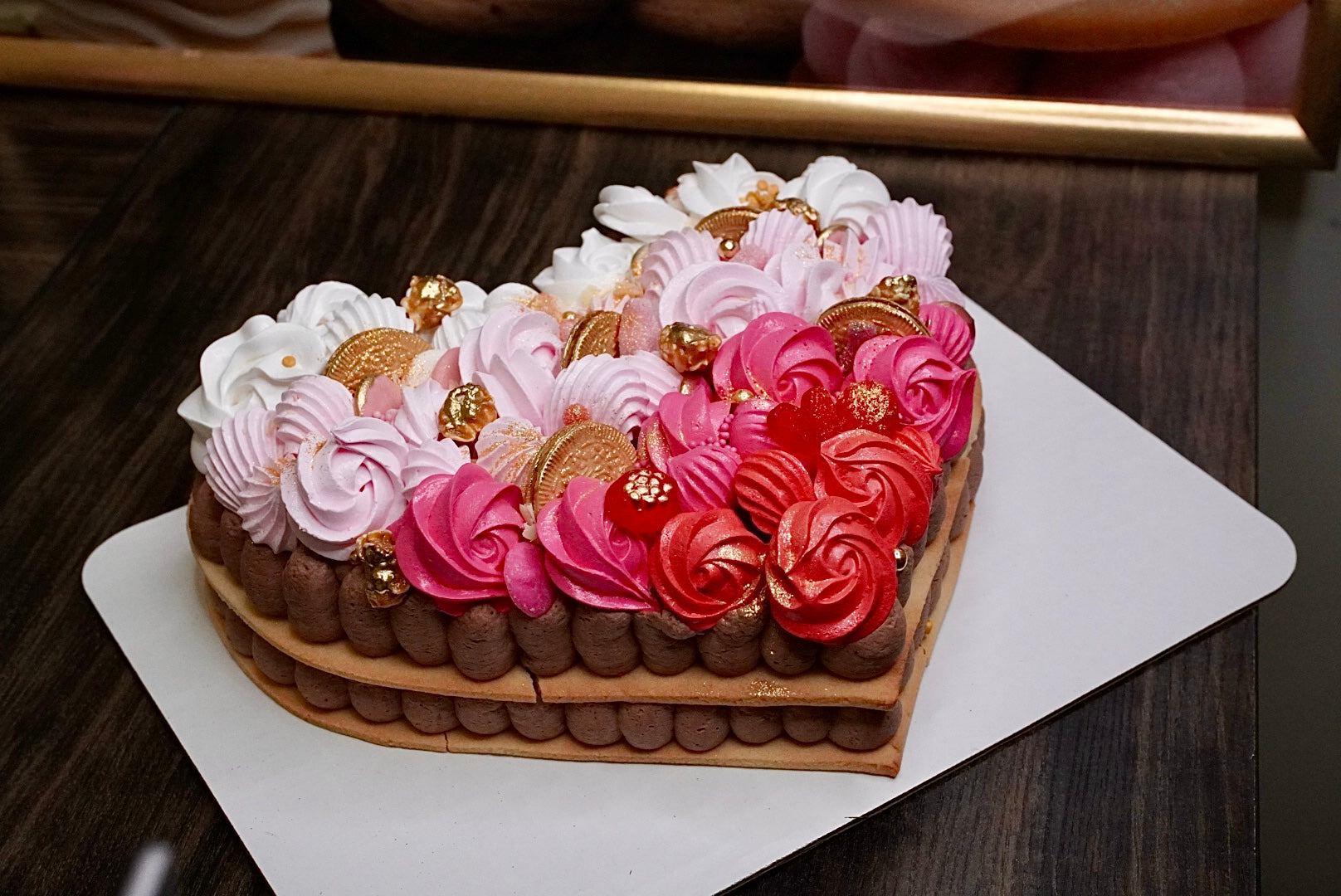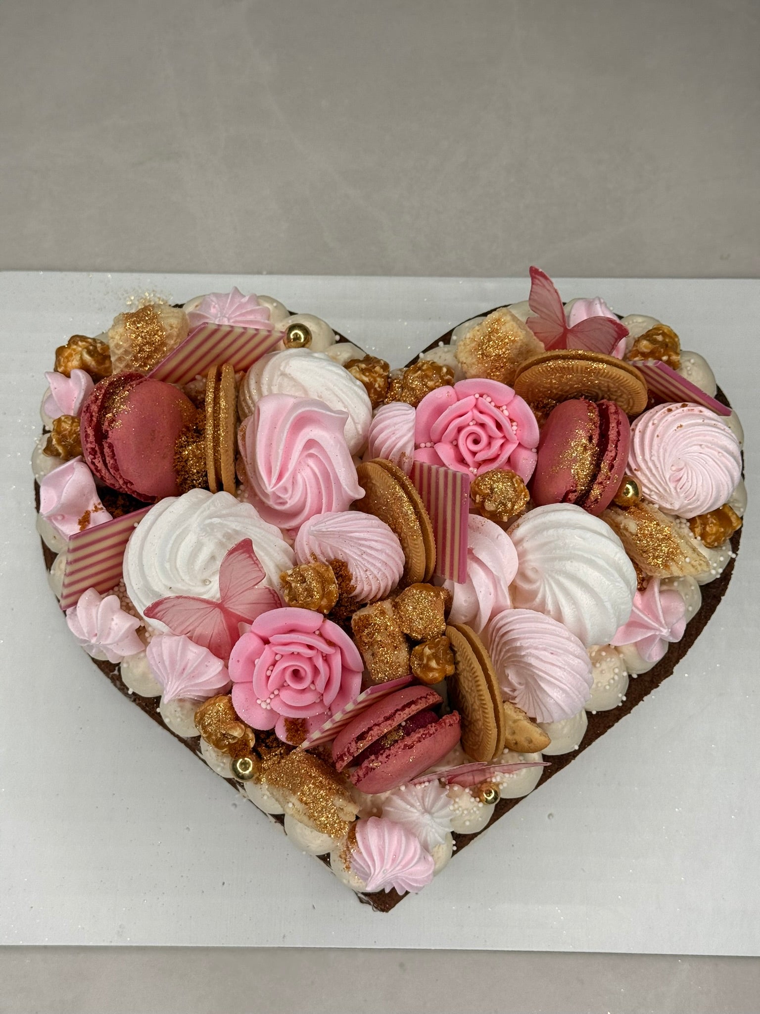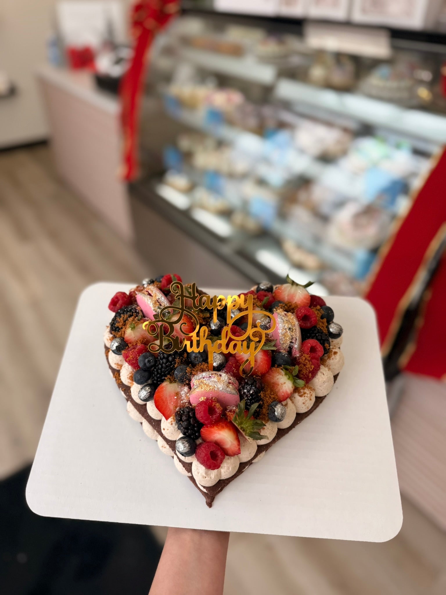 A classic heart-shaped cream tart fully filled with our signature light cream, layered on a crisp almond crust and finished with elegant decorations. Rich, balanced, and visually striking, this design is perfect for romantic celebrations, birthdays, and meaningful moments.